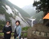 貸切バスで落差60mの千尋の滝を訪れた後、ホテル入り。