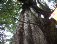 千年以上の木は大体が、落雷により、なかばより折れている。