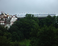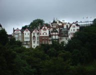 いかにもイギリス風 | 建物の右側にある横一直線は昨日、見たフェスティバルの 座席のトップ部分とライト |