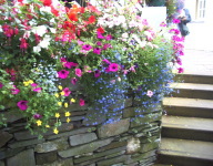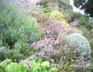 よく雨が降るので花が元気 | こぼれるように咲き乱れる 裏口の花たち イングランドにしては原色使い |