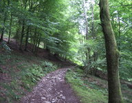 樹齢100年〜200年の木がそこかしこに立っていて、遊歩道(フットパス)に影を落としている。