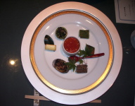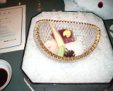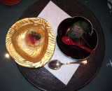 夕方 5:30 夕食の"懐食 みちば"行きのバスのお迎えが来た。 まあ、名にし負う料理人となれば、店にいるなどないと思っていた。 それがひとつひとつのテーブルごとに、一緒に写真を撮るため 出てこられた。(主催者の要請とか) 各テーブルでワァ〜とかキャ〜っとか、熟年おばさんの黄色い声に 思わず、"エ〜っ?"と振り返った。 料理といえば、材料がいいので"よさ"はそのまま、伝わってくる。 しかし、お吸い物に色がついていると、微妙に味に影響し " こんなんじゃない"なんて、えらそうに思う。 食後は、銀座も店が閉まっていて、結局どこに行くことなく、東京は終わった。 |