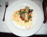 サーモンの 野菜詰めカネロニ(太パスタ)乗せ クリームソース |