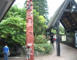 | トーテム・ポール風看板 | 1887年、この洞窟が発見された。1987年政府から当初の所有者に 返還された。 |