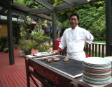 バーベキューランチ 焼くのはお肉とサーモン? 焼く人は日本人 |