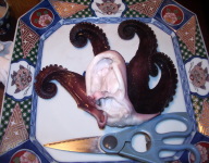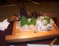| 大皿にこれで四人前のてっさ | 触覚を振って最後のあがき | 残酷で動いている間は 食べれない |