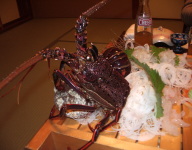 ふぐづくしと思っていたら、なんと、大きな生きた伊勢えびと大きな茹でだこ。