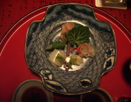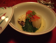 | 先付けはおひたし 蛤、いくら、水菜、わかめ |