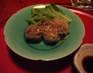 強肴(しいざかな) 牛肉、牛蒡、うど、くるみ レタス、茗荷の生春巻き 今を取り入れていて とてもおいしい |