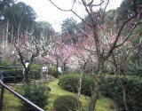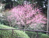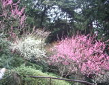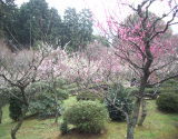 山腹にみごとな梅園が広がって見え、ピンク・濃いピンク・白と