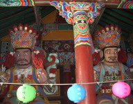 | 日本では見られない 山門の支柱 スクエアーでなく一直線に 並んでいる |