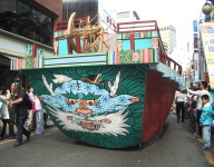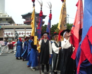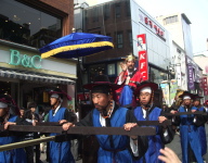 この日、朝鮮通信使のお祭りがあり、韓国の時代劇に見る扮装で、行列が続く。