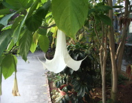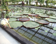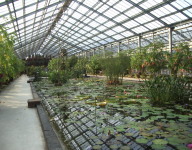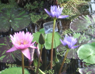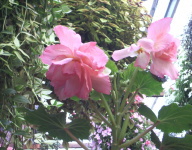 回廊式になっている園内を進むと、水辺の植物とそのぐるりに、木に咲く花たち。