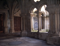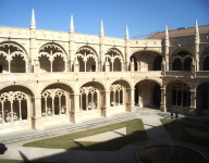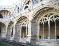 ジェロニモス修道院の 石のアーチの回廊と その石灰岩の柱には 椰子の木、胡椒の粒などの 模様が刻まれている。 |